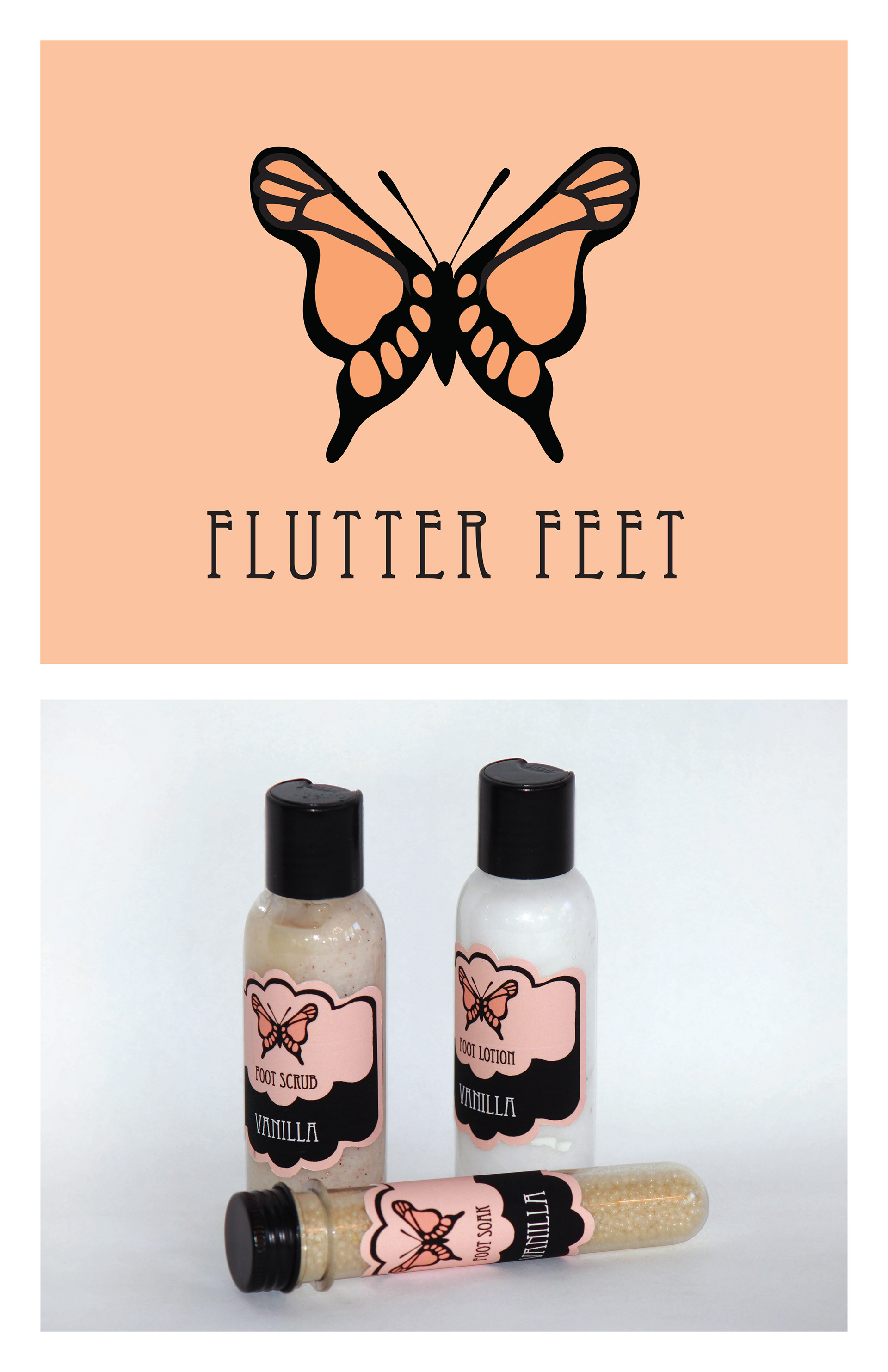 A logo identity design for a brand concept, "Flutter Feet," a therapeutic foot therapy kit