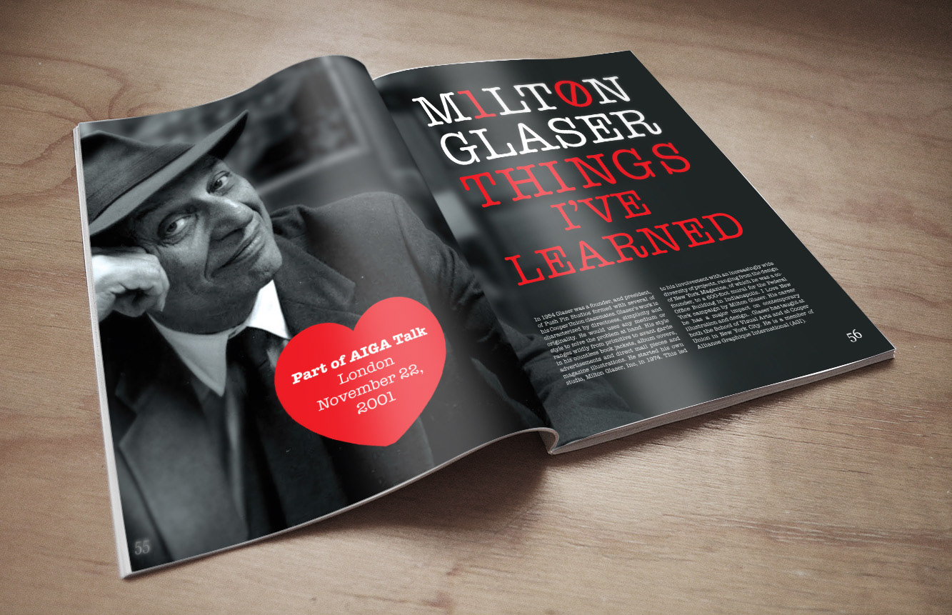 Milton Glaser's involvement in an AIGA Talk in London November 22, 2001 serves as the inspiration behind this editorial concept.